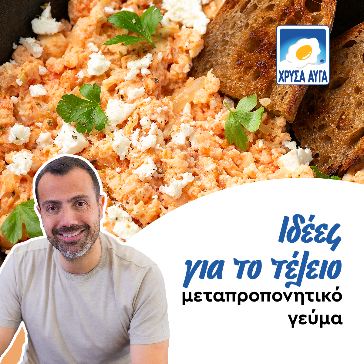 • Scrambled eggs με αυγό και γάλα σερβιρισμένο σε ψωμί και ψητά λαχανικά