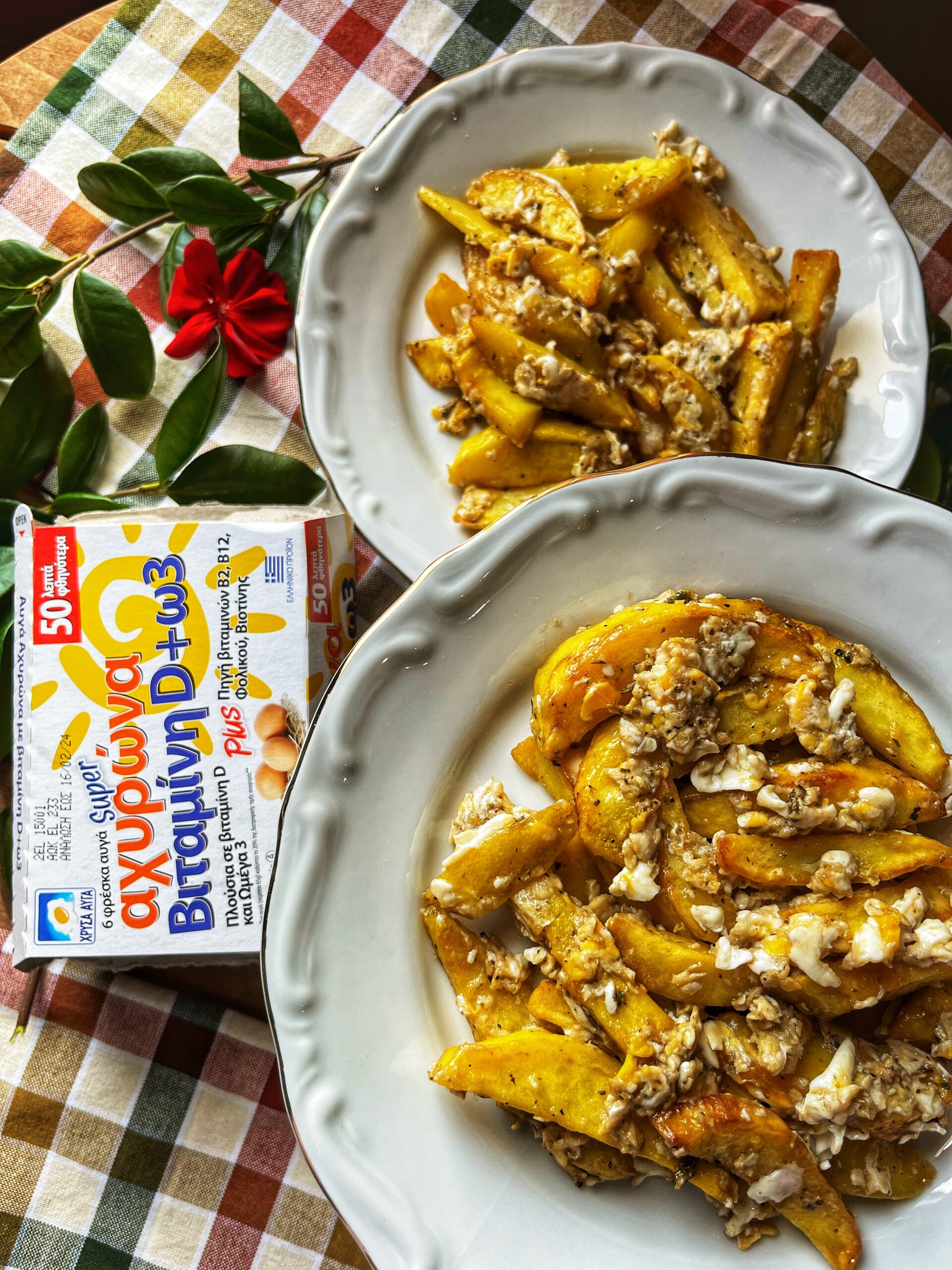 -Στη συνέχεια, σε ένα βαθύ τηγάνι, ρίχνουμε αρκετό σπορέλαιο και τηγανίζουμε τις πατάτες. Έπειτα, τις αφαιρούμε από το τηγάνι και τις τοποθετούμε σε ένα πιάτο με χαρτί κουζίνας για να απορροφήσει το λάδι.